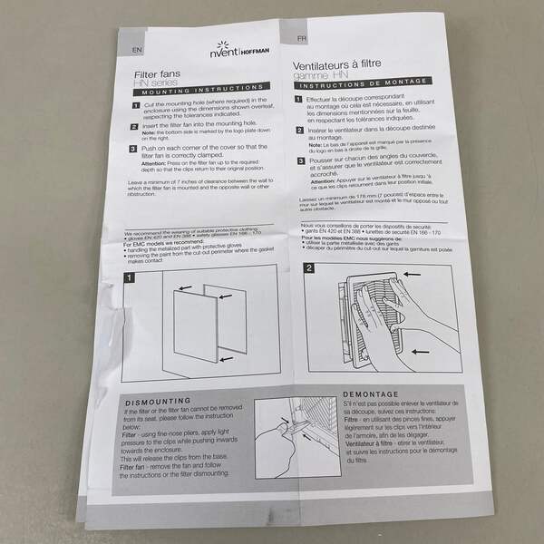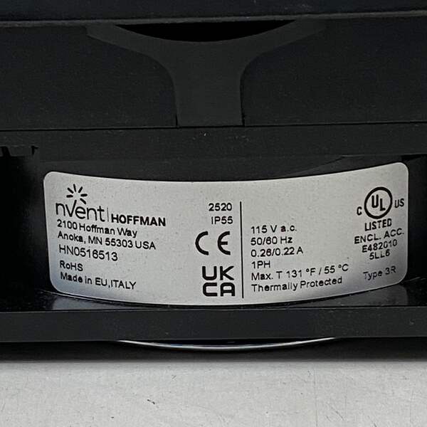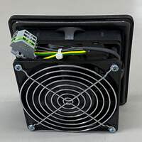 HOFFMAN 3R Side-Mount Filter Fan Condition: New Size: 5.9"x5.9"x2.9" Color: Black MPN/Model: HN0516513 Description: Click-fit design quickly installs into enclosure wall; no tools or screws required Grille opens with the flick of a finger for easy filter replacement Enclosure side wall mounting Reverse airflow option on items ending with “R” available to push/pull air through higher static pressure Standard rope gasket provides proper seal to the enclosure Similar cut-out sizes as other filter fan manufacturers Terminal block connections Optional thermostat available to save energy and extend service life Hinged grille remains attached after opening