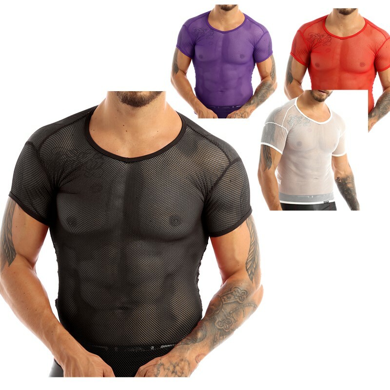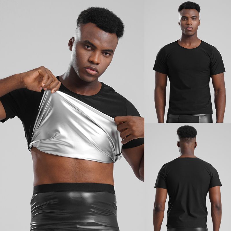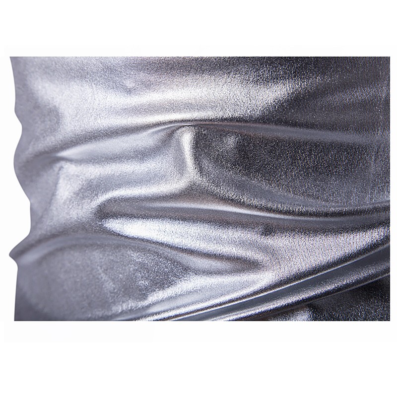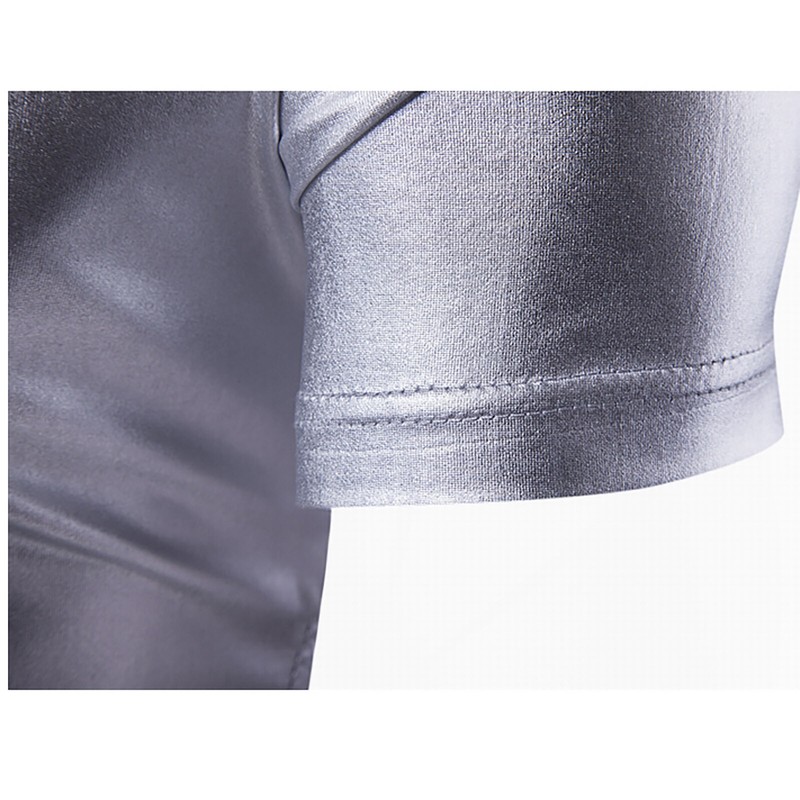 Men Shiny Metallic V Neck Short Sleeve T-shirt Fashion Solid Color Slim Fit Tops.