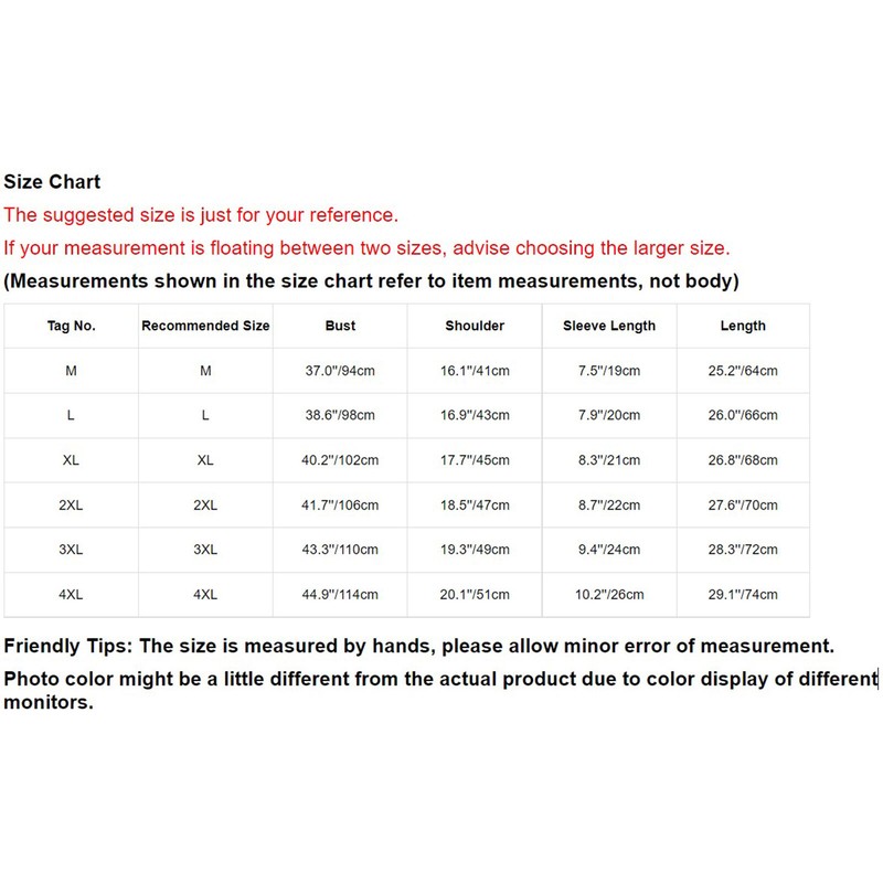 | Tag No. | Recommended Size | Bust | Shoulder | Sleeve Length | Length |