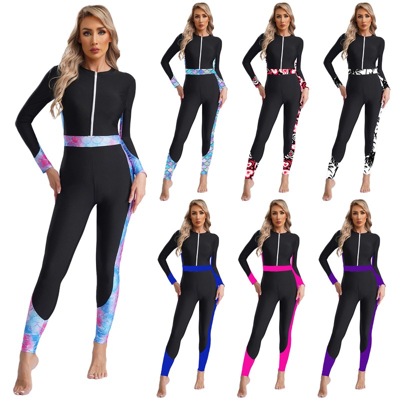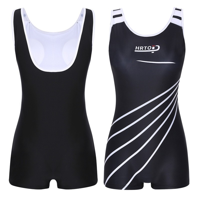 This athletic swimwear offers full coverage wearing experience, perfectly fits fashionable yet conservative ladies.