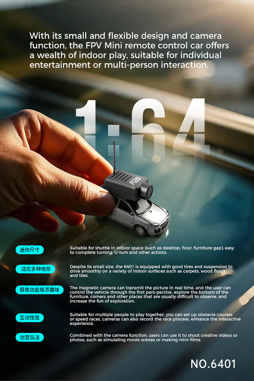 Neues Mini-Kamerafahrzeug im Maßstab 1:64 (2025). Steuerung über eine mobile App mit magnetischer 120°-Weitwinkel-HD-Kamera. Sie können den Kamerabildschirm in Echtzeit betrachten, die Geschwindigkeit anpassen, die Lenkung steuern und auf verschiedenen Oberflächen wie Teppichen, Holzböden und Fliesen spielen.