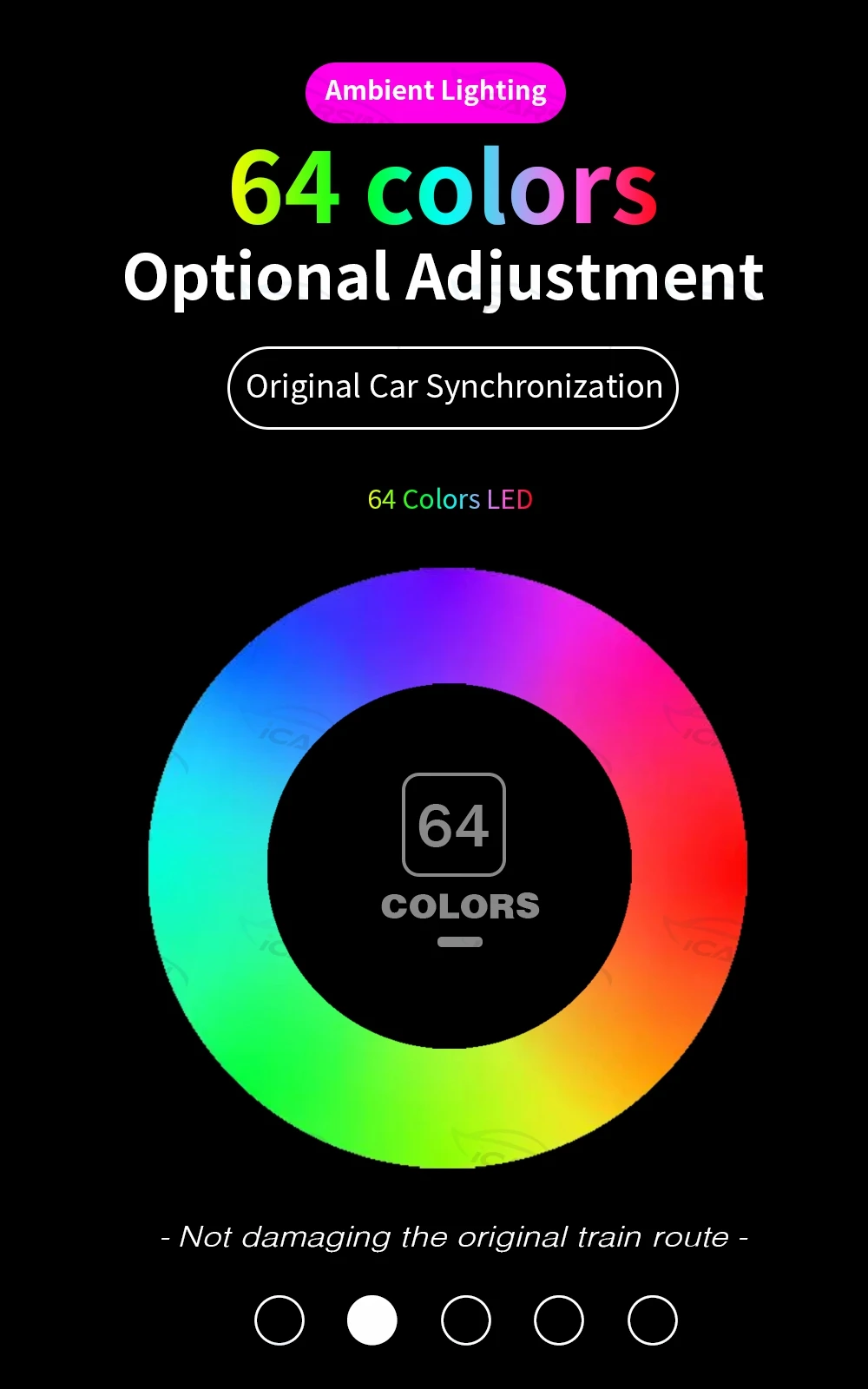1. For Car with factory ambient lights, control this kit by oem media interface. Plug and play to go 64 colors.