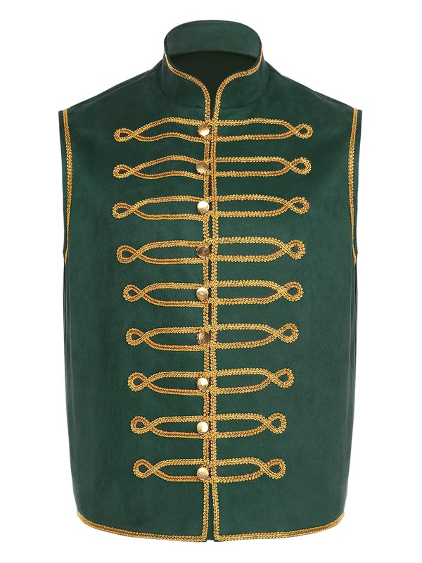 Men's Medieval Renaissance Costume Gold Trim Sleeveless Vest Top for Halloween