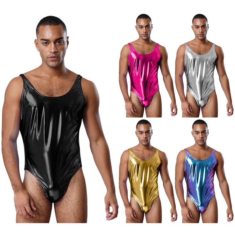 Men Bodysuit Gym Unitard Romper Jumpsuit Fitness Adult Swimwear Deep U-Neck