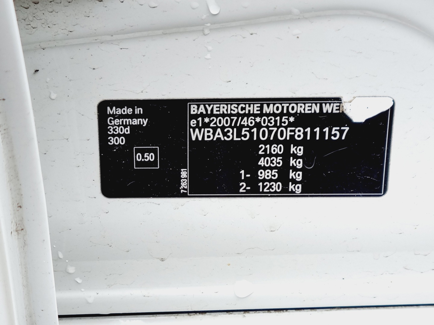 • Fahrgestellnummer : WBA3L51070F811157