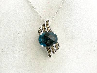 Le Vian Chocolatier Pendant featuring 2 cts. Blue Topaz, 1/6 cts. Chocolate Diamonds set in 14K White Gold