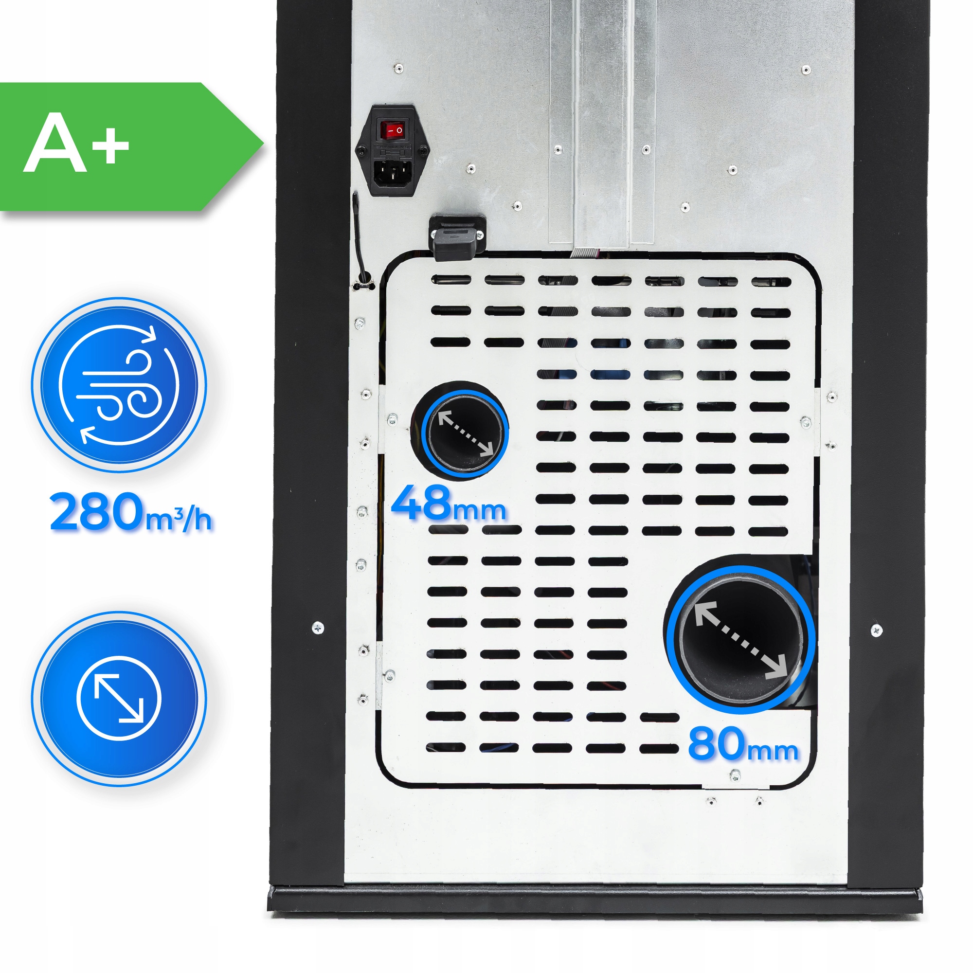 - Flexible Abgasführung – Rückenauslass mit einem Durchmesser von 80 mm.