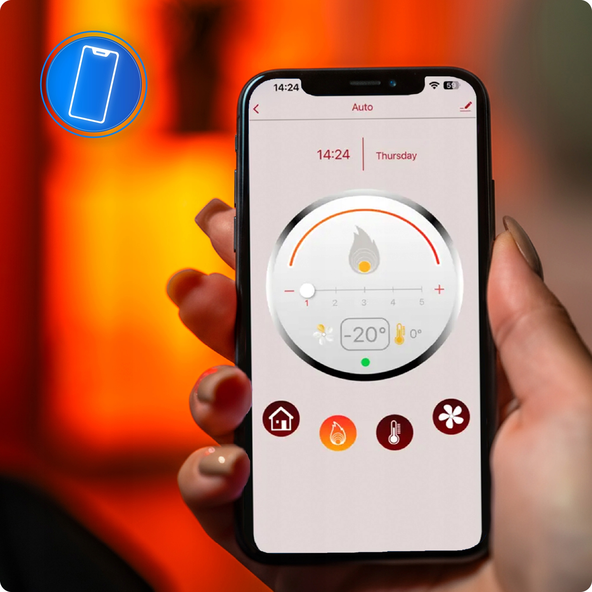 - Komfort in Ihrer Hand – steuern Sie den Ofen bequem mit Fernbedienung oder App, wo immer Sie sind.