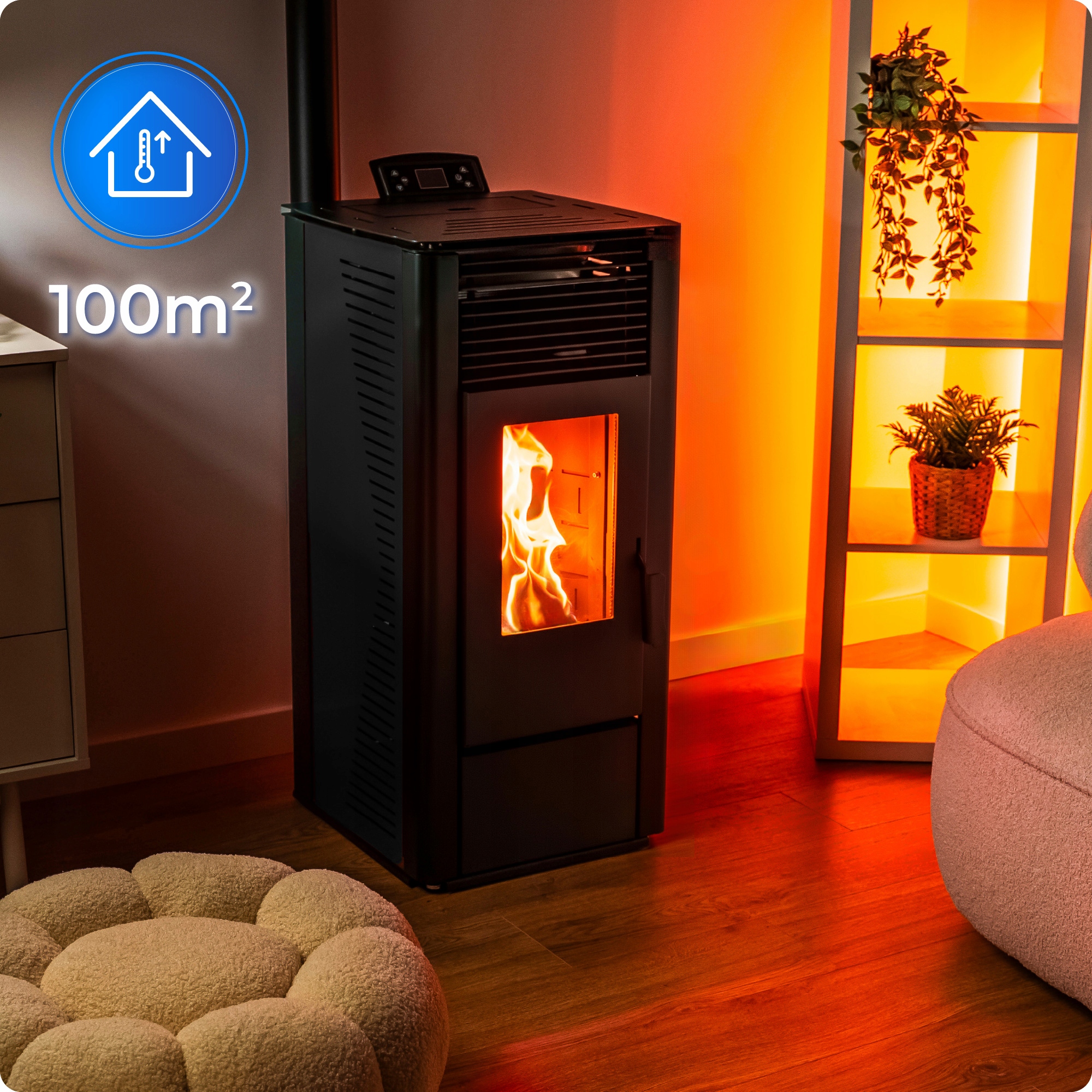 - Vollautomatischer Pelletofen – benutzerfreundlich mit eingebautem Ventilator.