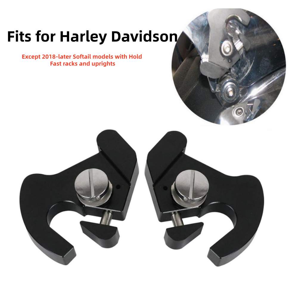 The luggage rack latch clips fit for all Harley Davidson Softail Sportster Touring with detachable sissy bar backrest and Luggage Racks. (Except 2018-later Softail models with Hold Fast racks and uprights)