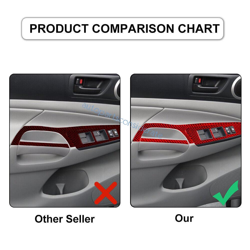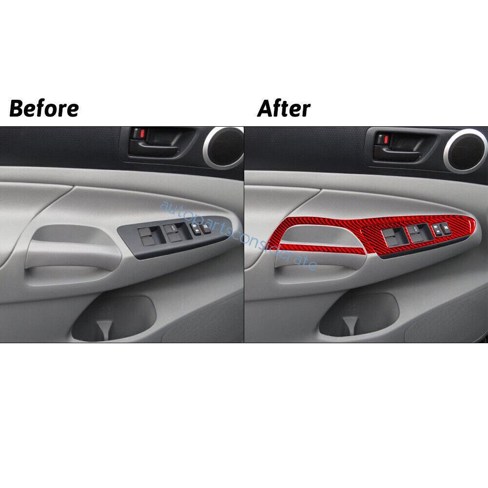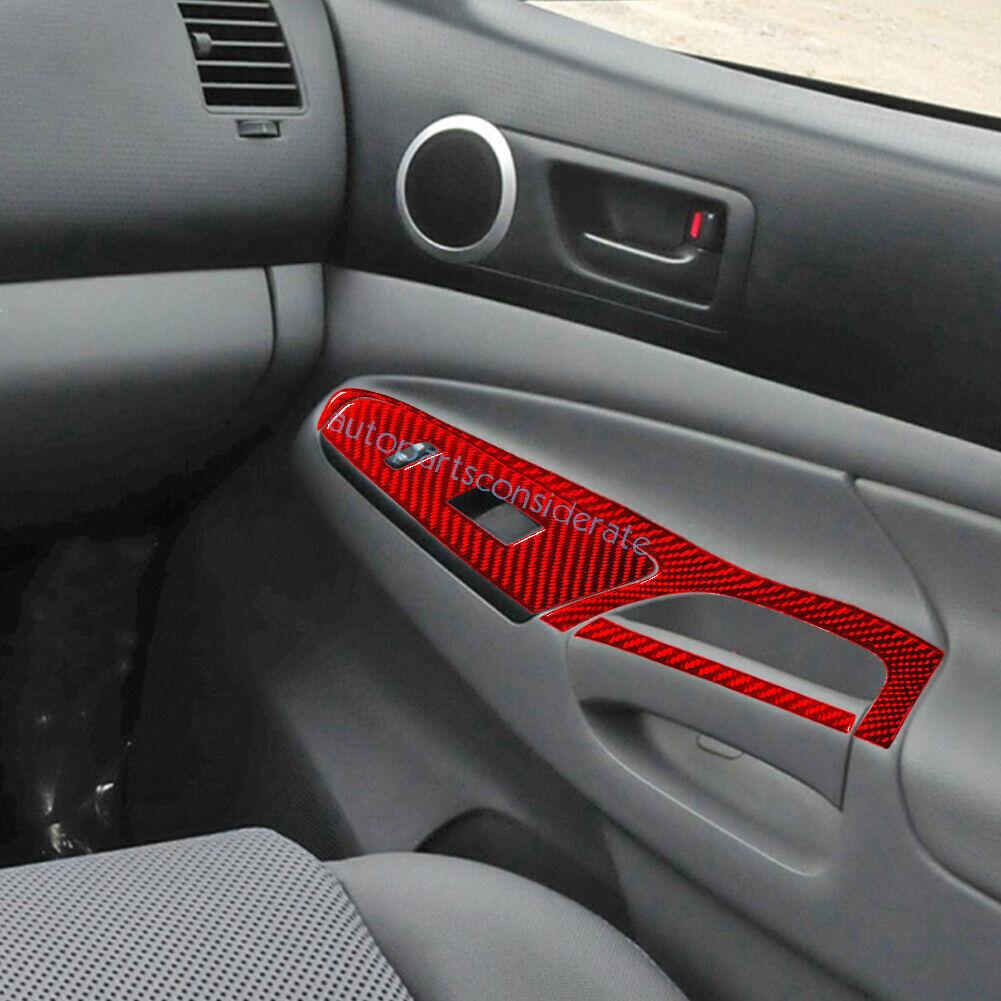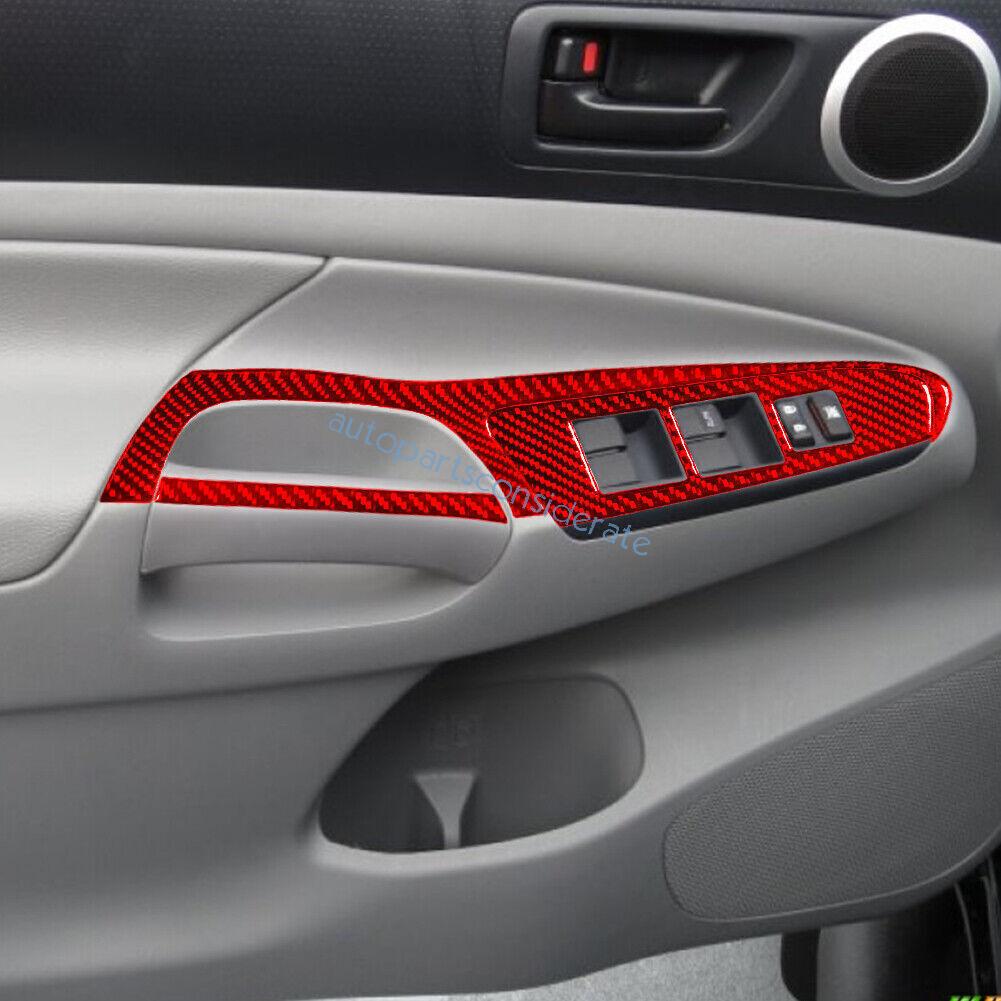 6Pcs For Toyota Tacoma 2012-15 Glass Window Lifting Lock Panel Red Carbon Fiber