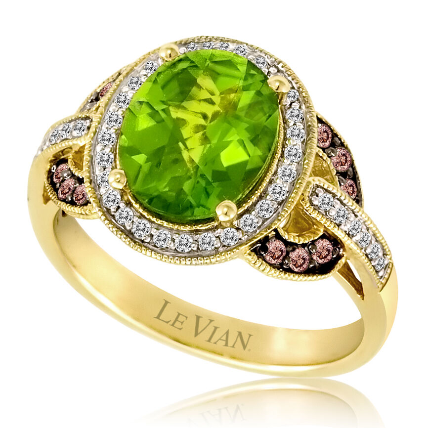 Le Vian Grand Sample Sale Ring featuring 2 1/2 cts. Green Apple Peridot, 1/8 cts. Chocolate Diamonds, 1/5 cts. White Diamonds set in 14K Yellow Gold