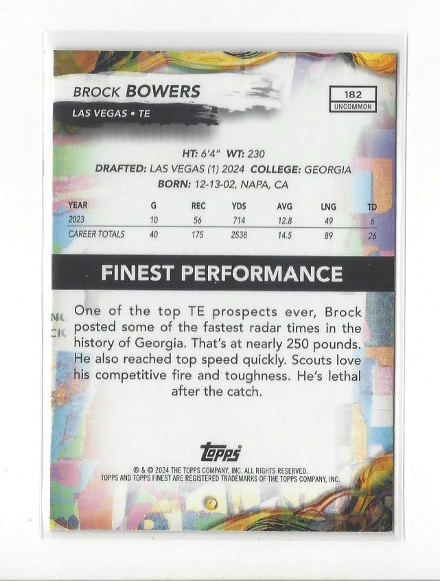 2024 Finest #182 Brock Bowers RC Rookie Raiders