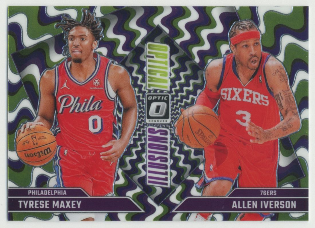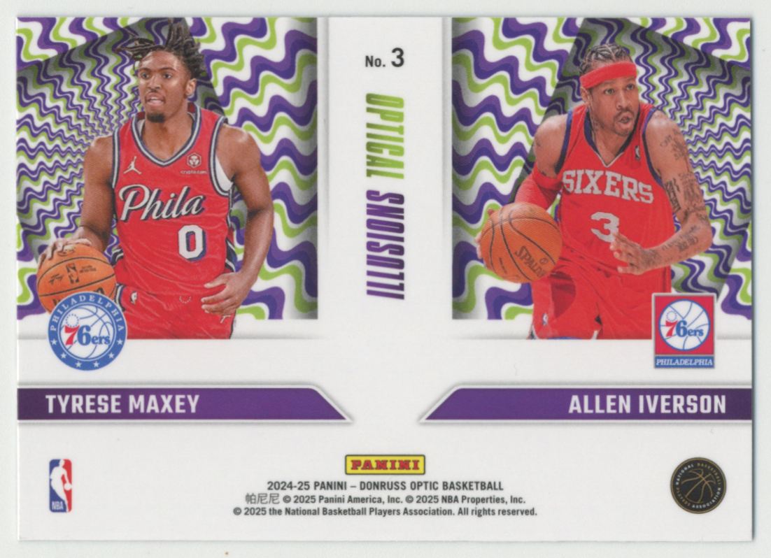 | Tyrese Maxey Allen Iverson 2024-25 Donruss Optic Optical Illusions #3 |