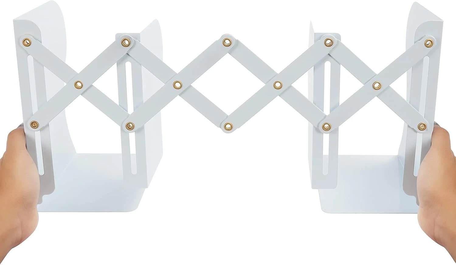 Adjustable White Metal Heavy-Duty Bookends.