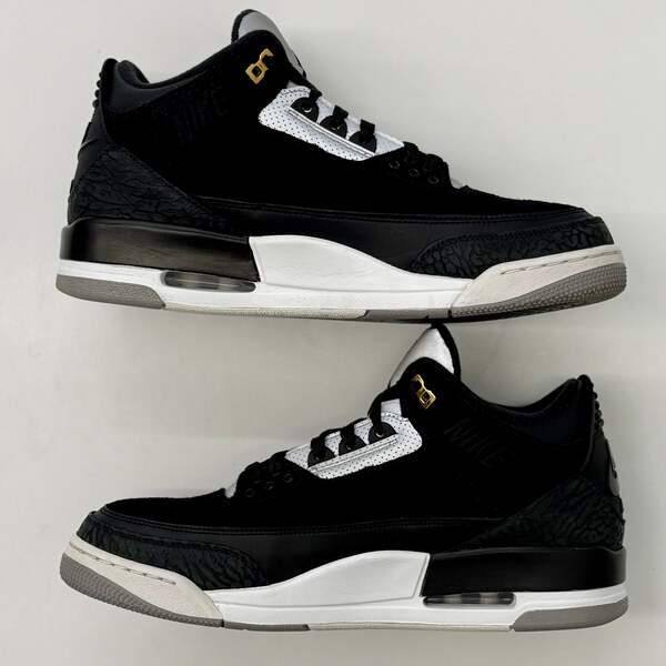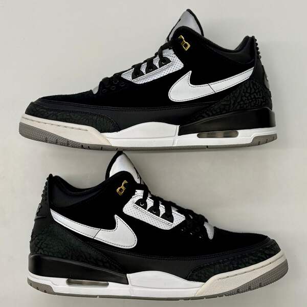 The Jordan 3 Retro Tinker Black Cement Gold pays homage to legendary designer Tinker Hatfield with a premium colorway that reimagines the iconic silhouette. Featuring luxe black leather with signature elephant print overlays and striking metallic gold accents, this release celebrates the visionary behind some of Jordan Brand's most legendary designs.