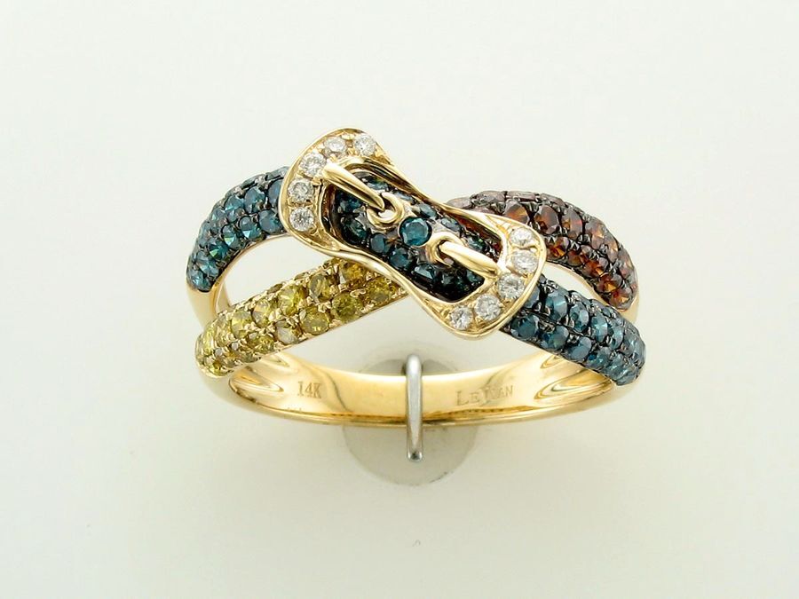 Le Vian Grand Sample Sale Ring featuring 1/3 cts. Goldenberry Diamonds, 1/3 cts. Cherryberry Diamonds, 5/8 cts. Blueberry Diamonds, 1/20 cts. White Diamonds set in 14K Yellow Gold