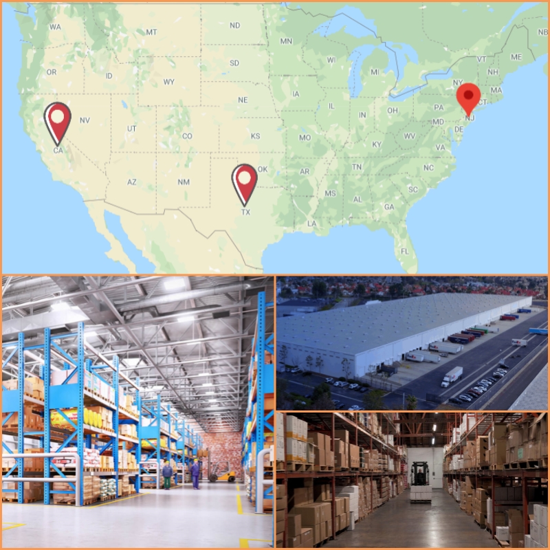 We have warehouses in the East, West, and Central regions of the US, and we will deliver the packages as quickly as possible.