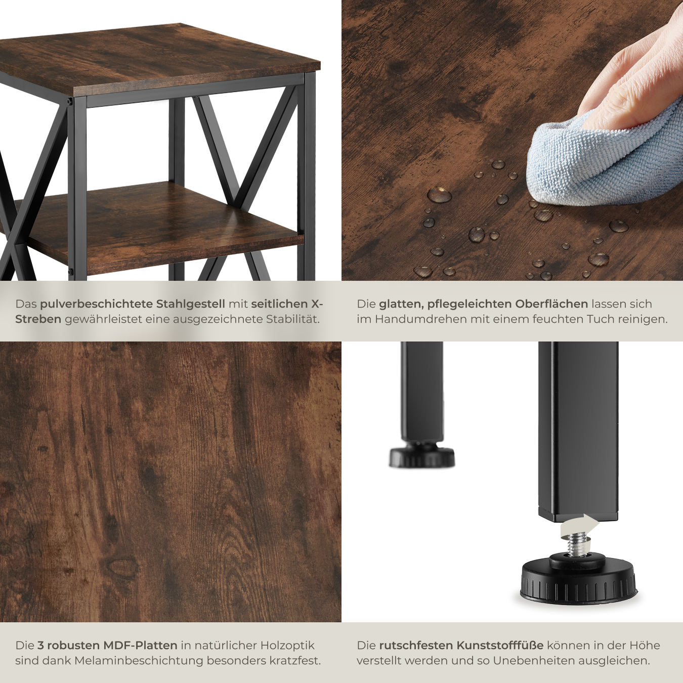 - Robuste MDF-Platte mit schöner Maserung