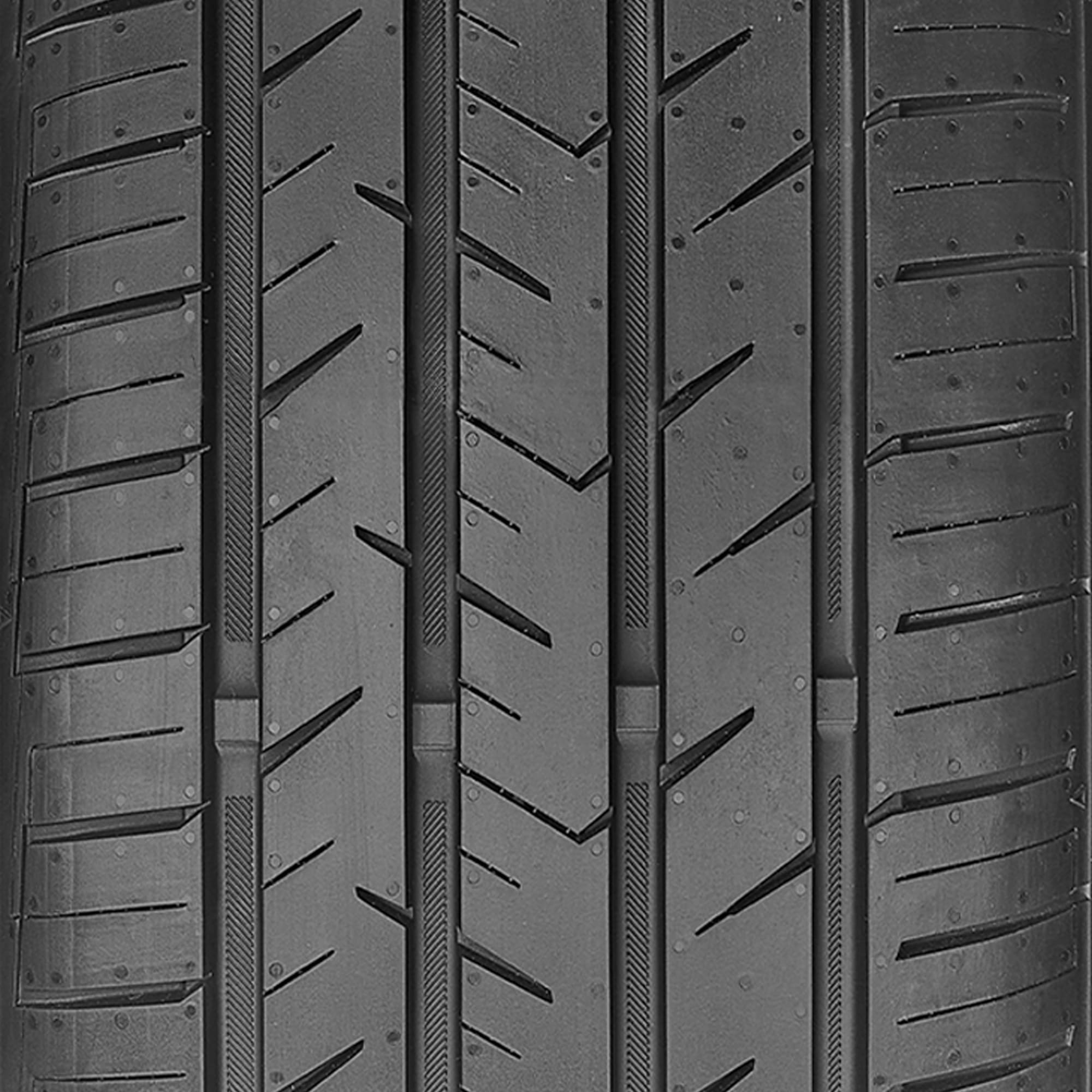 • Four circumferential grooves force water out of the footprint for increased wet grip and hydroplaning resistance