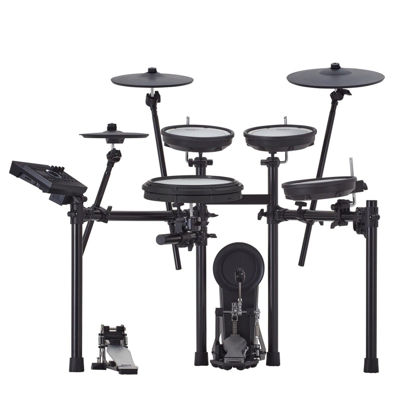 - Crash und Ride Becken mit dünneren Profilen sorgen für ein realistisches Spielgefühl und Schwingverhalten