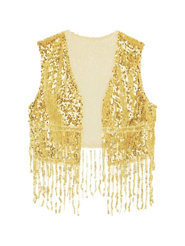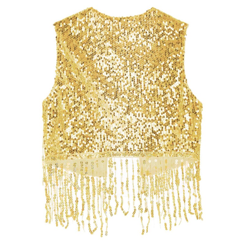 Designed with open front, collarless, sleeveless, fully lining and sequined surface, shiny sequin fringe, the vest is very stylish for women.