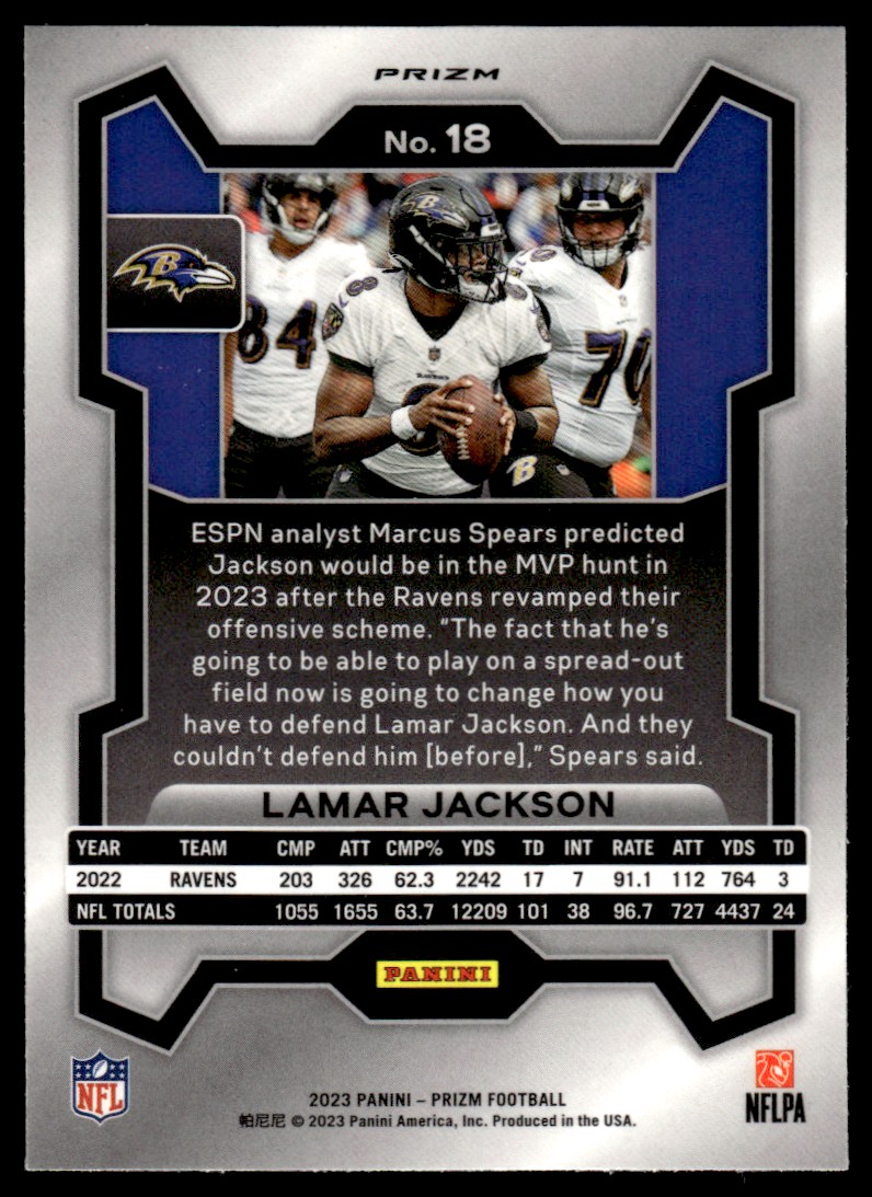 | 2023 Panini Prizm Pink Lamar Jackson Baltimore Ravens #18 |