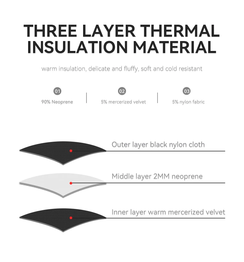 Three layer thermal insulation material, the inner layer is made of neoprene, which can effectively reduce heat exchange and prevent heat loss