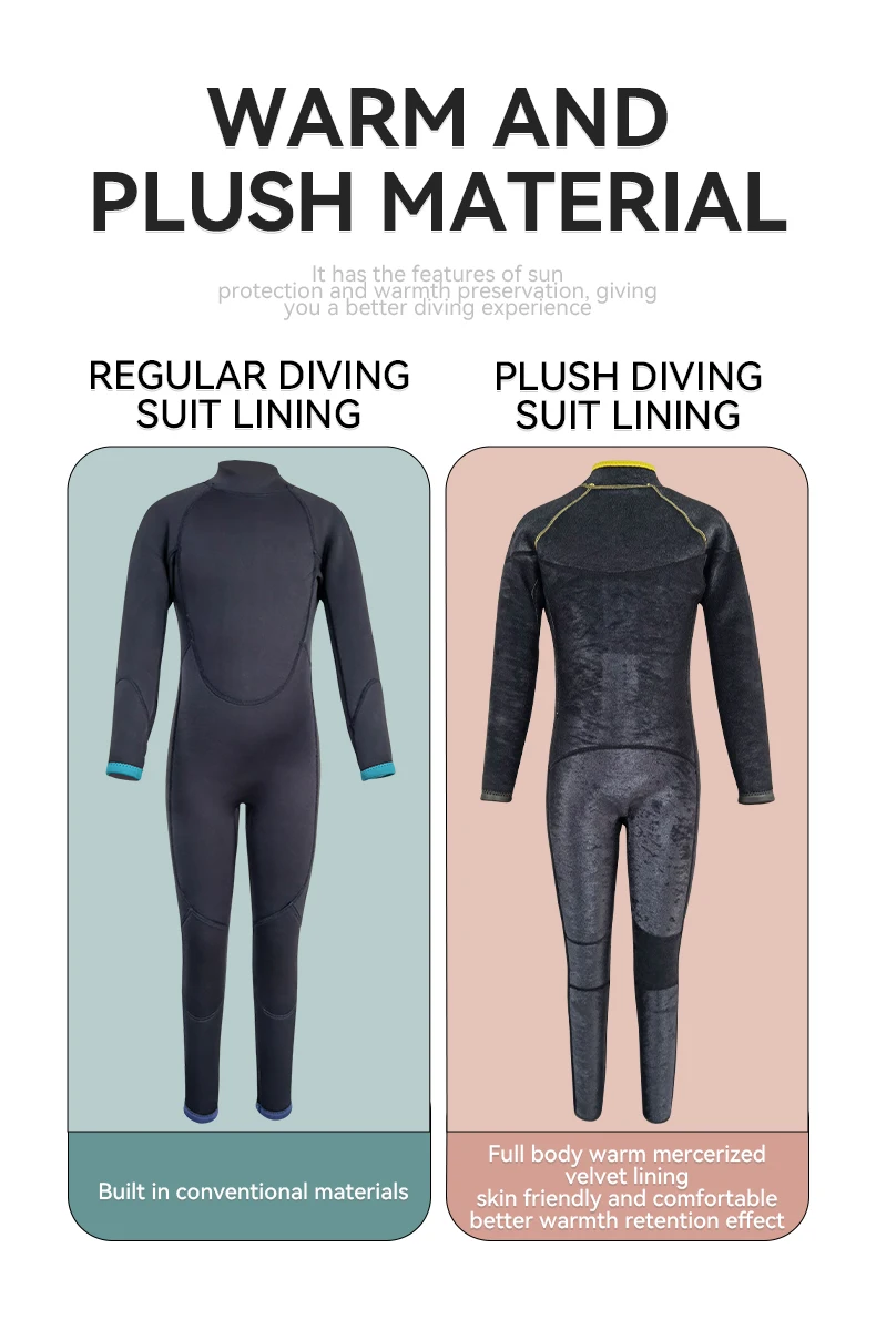 Soft fabric, close fitting collar, reduce friction, and keep warm underwater