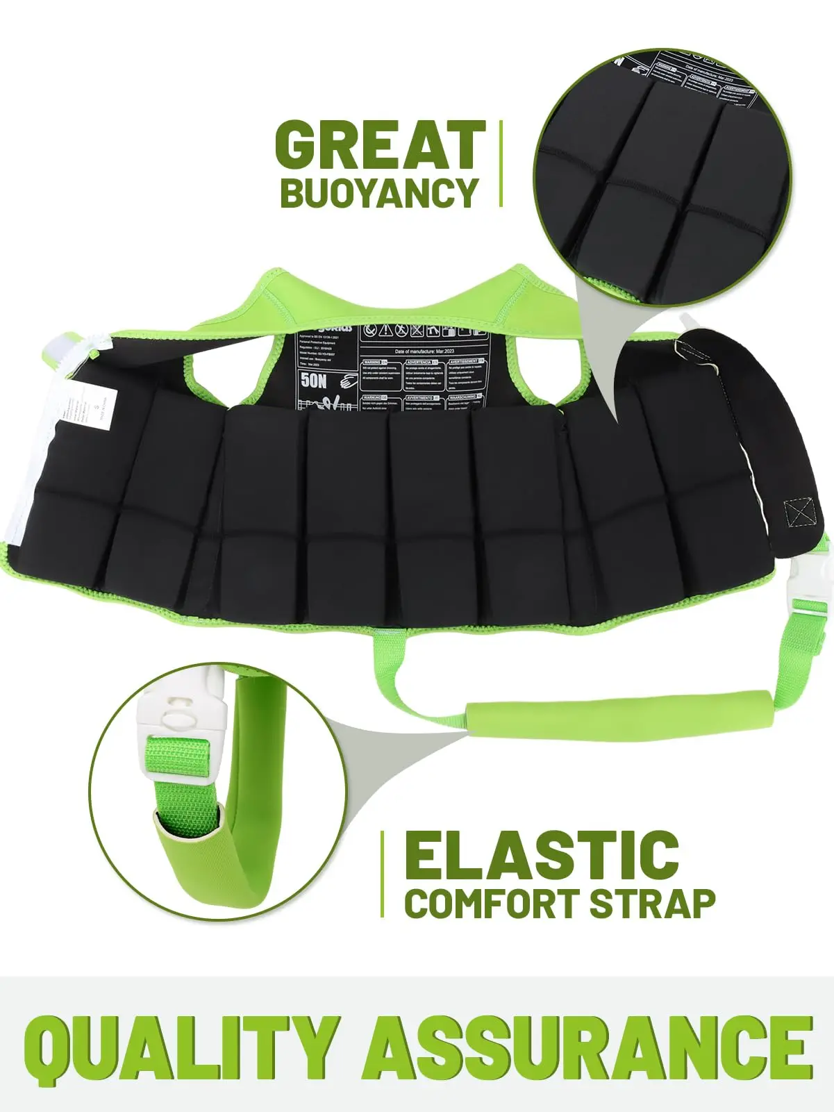 ◆ The hem of the kids swim vest is designed with a safety strap to make the clothes tightly fit and not easy to fall off.