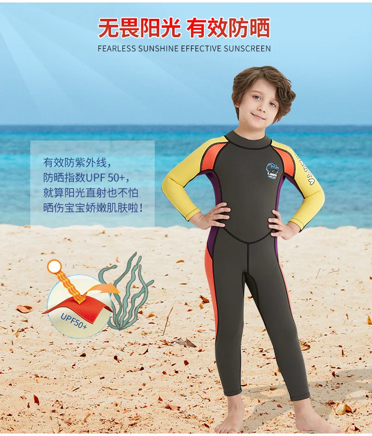 2.5mm thick neoprene rubber and double-sided laminated nylon elastic fabric can delay the drop in body temperature, keep warm,provide complete safety and comfort, and allow children to enjoy longer water activities.