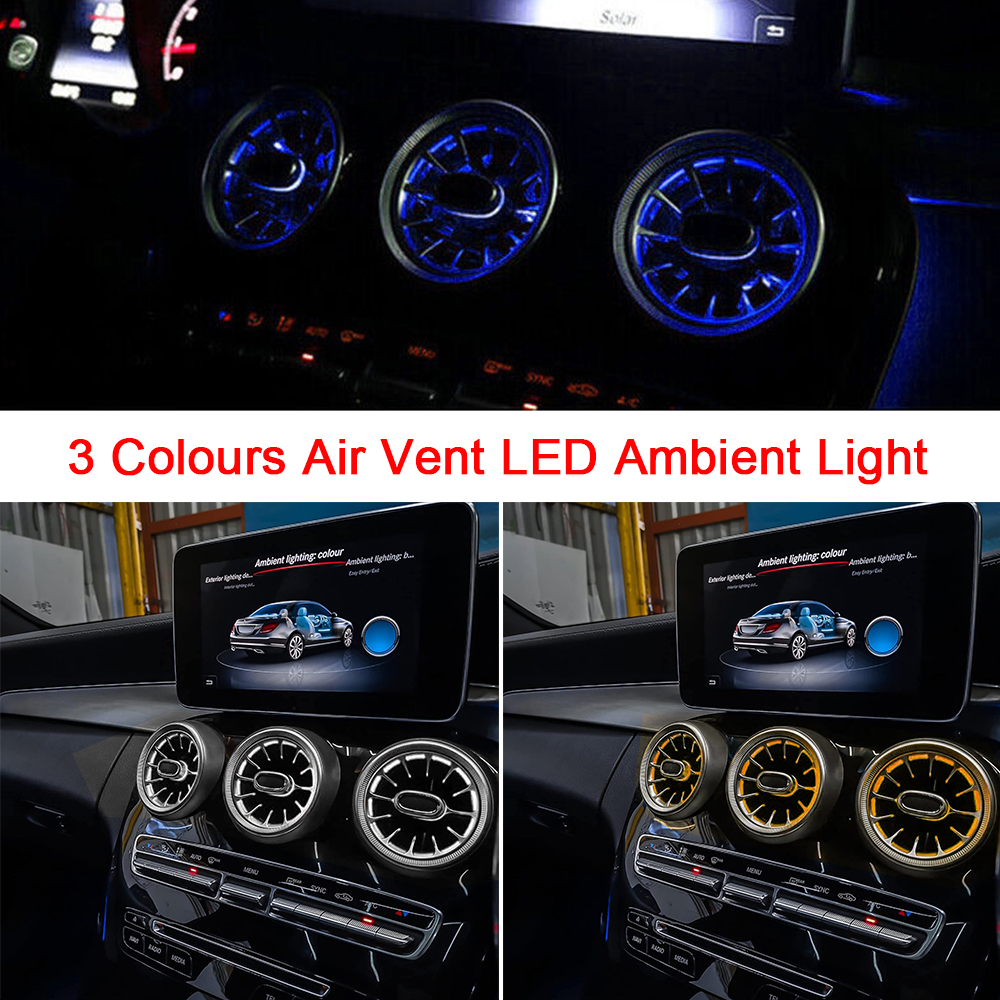 ✅ 3-Farben-LED-Umgebungslicht – Diese hintere Turbinen-Luftdüse ist mit 3-Farben-LED-Umgebungslicht ausgestattet, und Helligkeit und Farbwechsel können über den zentralen Schalter des Originalautos gesteuert werden.