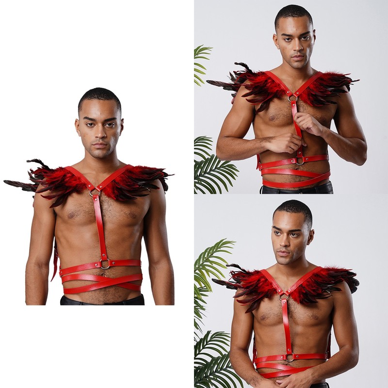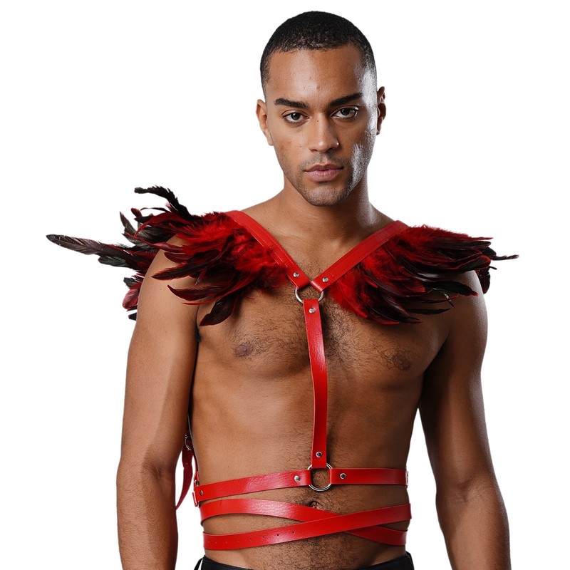 Unisex men Feathered Epaulet Shrug Cape For Halloween Party Body Chain Accessory