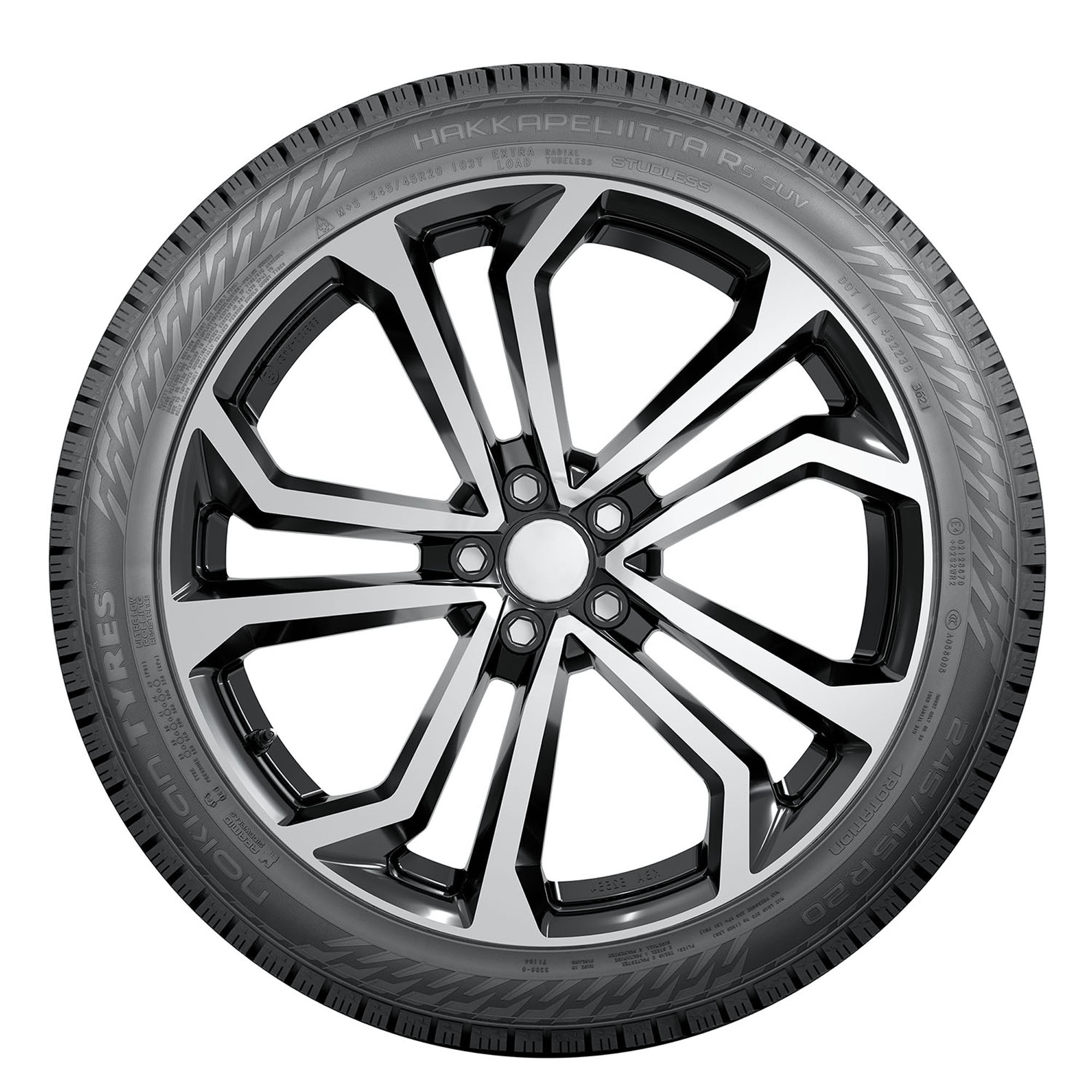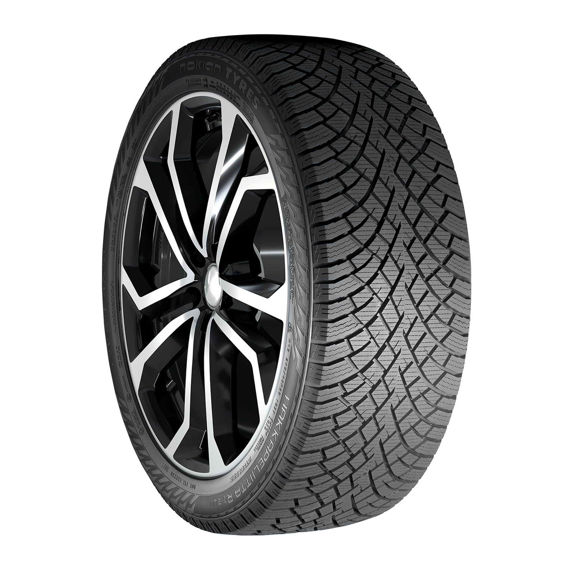 The Nokian Hakkapeliitta R5 SUV is a studless winter tire for CUVs, SUVs, and light trucks. Tailored to meet the needs of powerful and large vehicles, the Hakkapeliitta R5 SUV offers optimized stability, durability, and wear resistance while managing the high wheel loads precisely and reliably. The excellent ice performance is guaranteed by the unique Arctic Grip Crystals while the Aramid Strong Sidewalls offer increased durability and puncture resistance.
