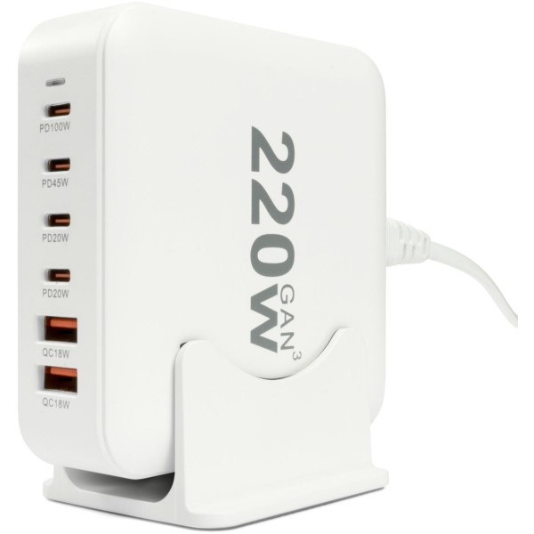 Die 6-fach USB-C Ladestation mit einer Gesamtleistung von 220 Watt kombiniert vier moderne USB-C-Ausgänge mit zwei leistungsfähigen USB-A-Anschlüssen. Damit eignet sie sich nicht nur zum parallelen Laden von Laptops, Tablets und Smartphones, sondern auch für stromhungrige Musikhardware wie Audiointerfaces, Effektgeräte, Synthesizer und mehr. Die Unterstützung von Power Delivery 3.0 (PD) und Quick Charge 3.0 (QC) garantiert dabei eine schnelle, stabile und geräteoptimierte Energieversorgung.