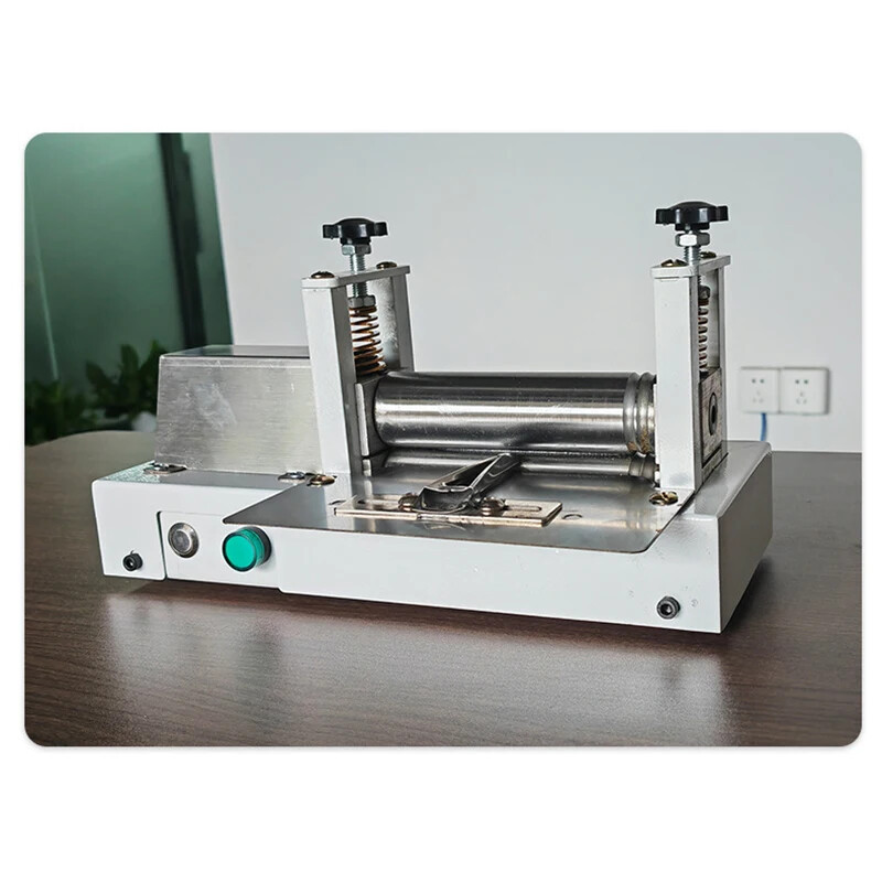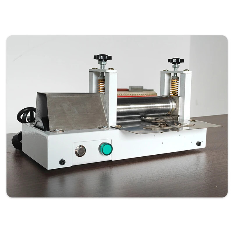 7. Vom anderen Ende der Maschine wird die Lederkante nach außen gefaltet und gewartet, bis der Kleber vollständig getrocknet ist.