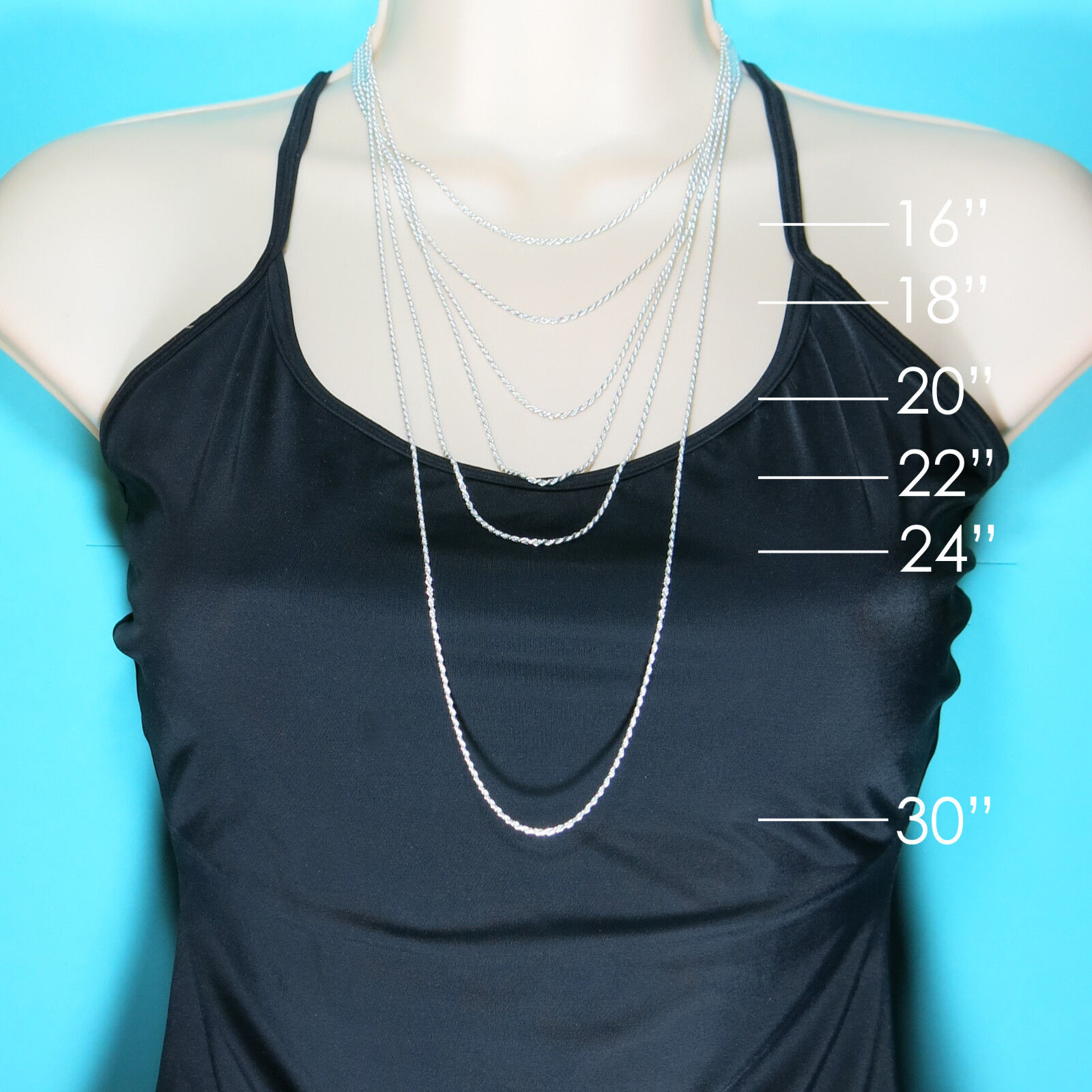 20" – 24" – Standard lengths for layering or everyday wear