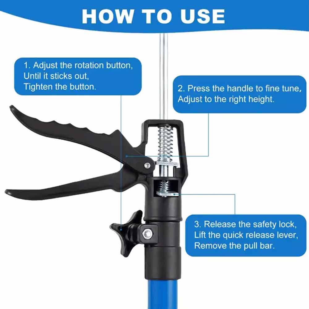 Adjustable height decorators prop. Sturdy metal frame with telescopic rod.