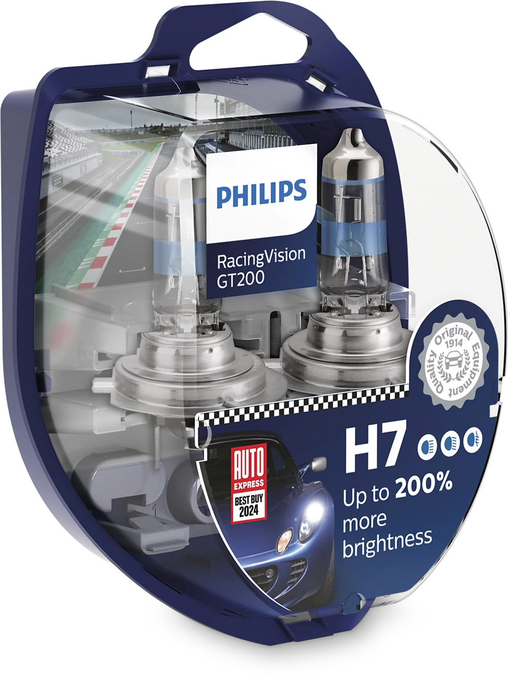 Philips RacingVision GT200 H7 (12972RGTS2) 2er Set Bis zu 200/% mehr Licht & 80/m mehr Sicht Erlebe die Nacht mit ganz neuen Augen: Die Philips RacingVision GT200 H7 überzeugt mit stark erhöhter Leuchtkraft (ca. 200/% heller) bei gleichzeitig gesetzlicher ECE-Straßenzulassung. Mit einer Lichtintensität von ca. 1.500/Lumen, einer Farbtemperatur um 3.500/K und optimiertem Lichtstrahl sorgt sie für bessere Sichtverhältnisse bis zu 80/Metern und erhöht damit Deine Sicherheit bei Nachtfahrten. Ideal als Abblendlicht, Fernlicht oder Nebelscheinwerfer bei Fahrzeugen mit H7-Sockel (PX26d). Leistung: 55/W / 12/V " Lebensdauer ca. 250/Stunden " Packung: 2 Stück " Original Philips Qualität & geprüfte Sicherheit