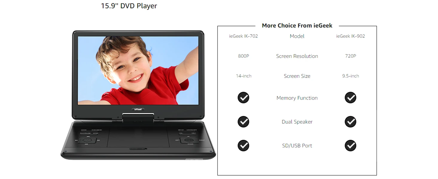With its user-friendly interface and oversized buttons, the ieGeek DVD player portable is suitable for all ages - from children to the elderly.