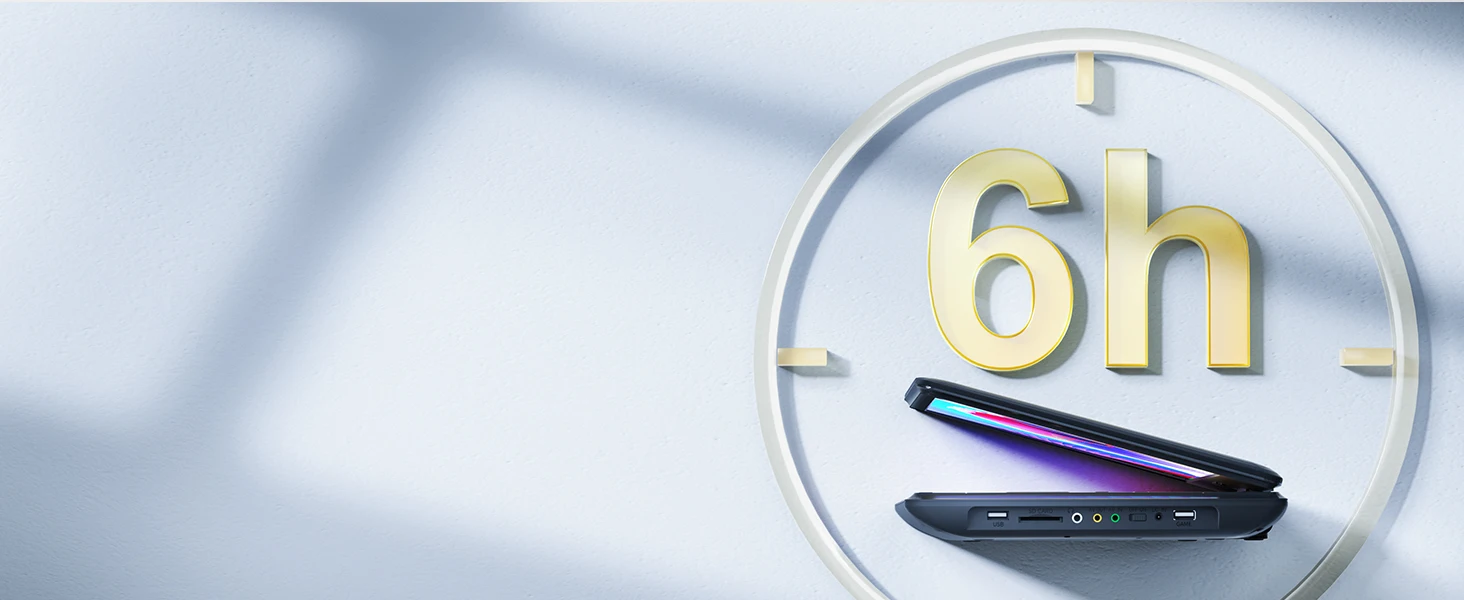 Enjoy your favorite movies for 6hrs without charging. High-quality portable car charger and AC adapter ensure a longer viewing time.