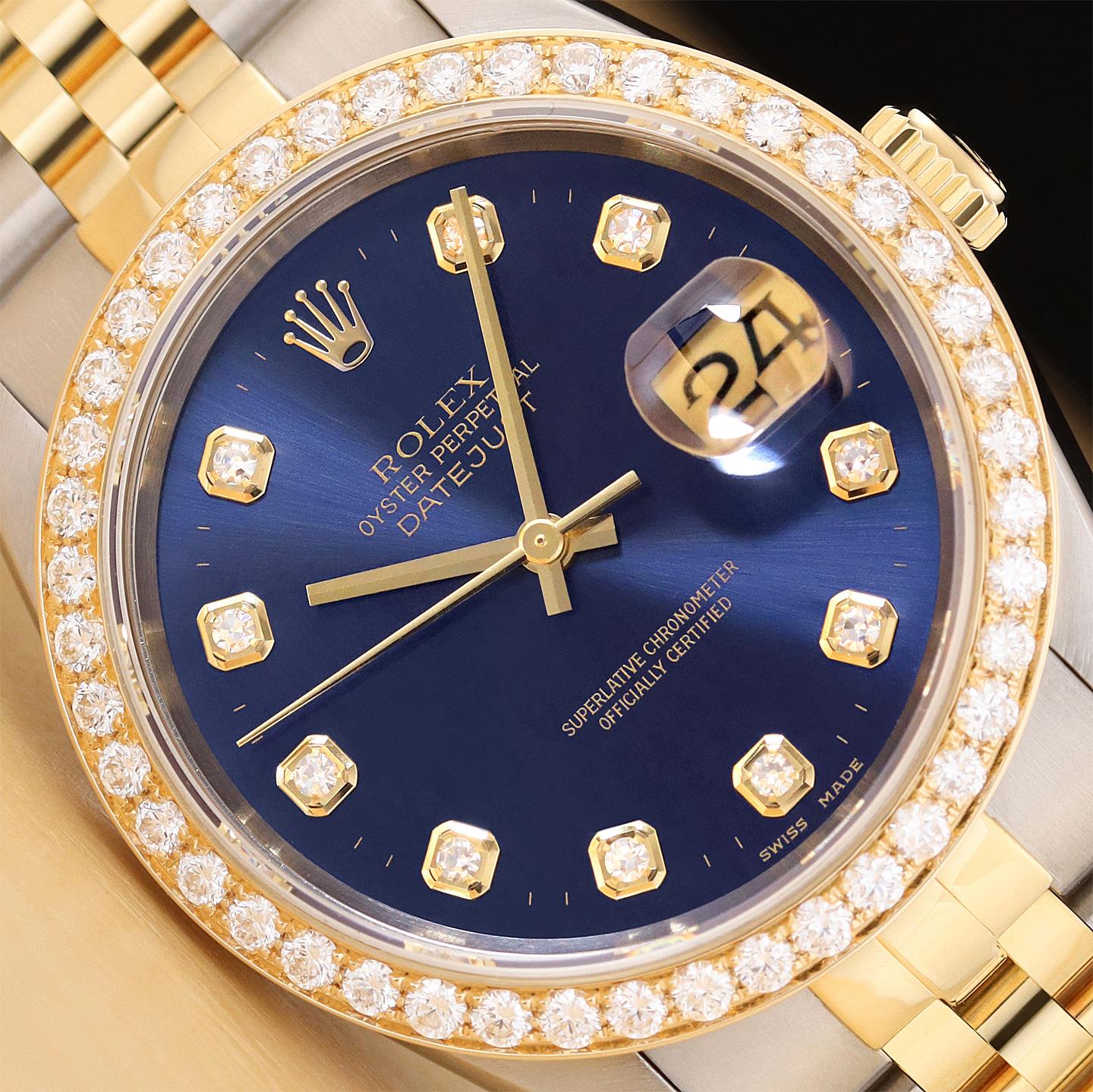 ROLEX DATEJUST 16233 BLUE FACTORY DIAMOND 1.6 CT BEZEL 18K GOLD STEEL WATCH