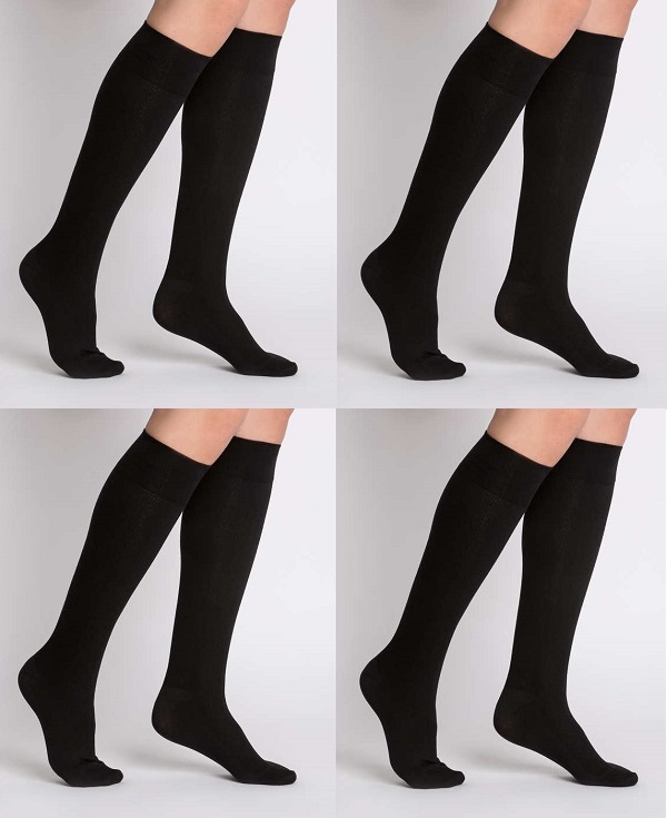 Reisestrümpfe schwarz 35-38 Damen Strümpfe mit Stützeffekt (4er-Pack) P477