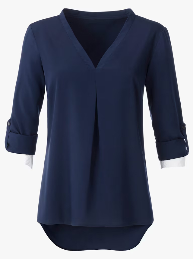 Bluse blau Damen Longbluse mit verlängertem Rückenteil
