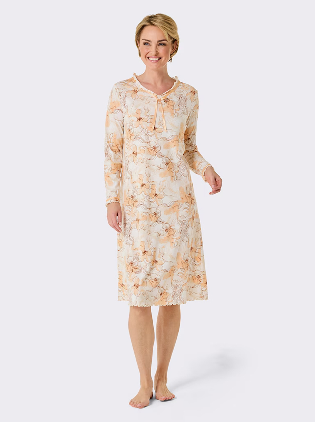 Nachthemd orange 44/46 Damen Wäschepur Floral-Muster apricot 2.6285