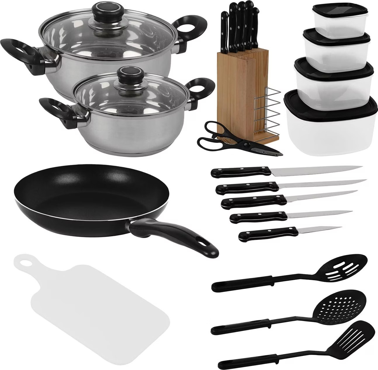 Kochgeschirr-Set 18-teiliges Töpfen Pfanne Messerblock Küchenzubehör 13.40
