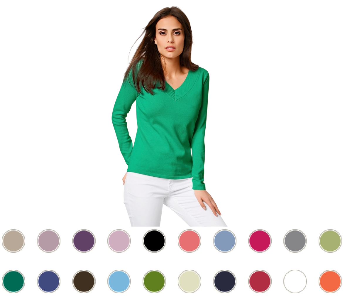 Pullover Damen V-Ausschnitt aus reiner Baumwolle verschiedene Farben und Größen