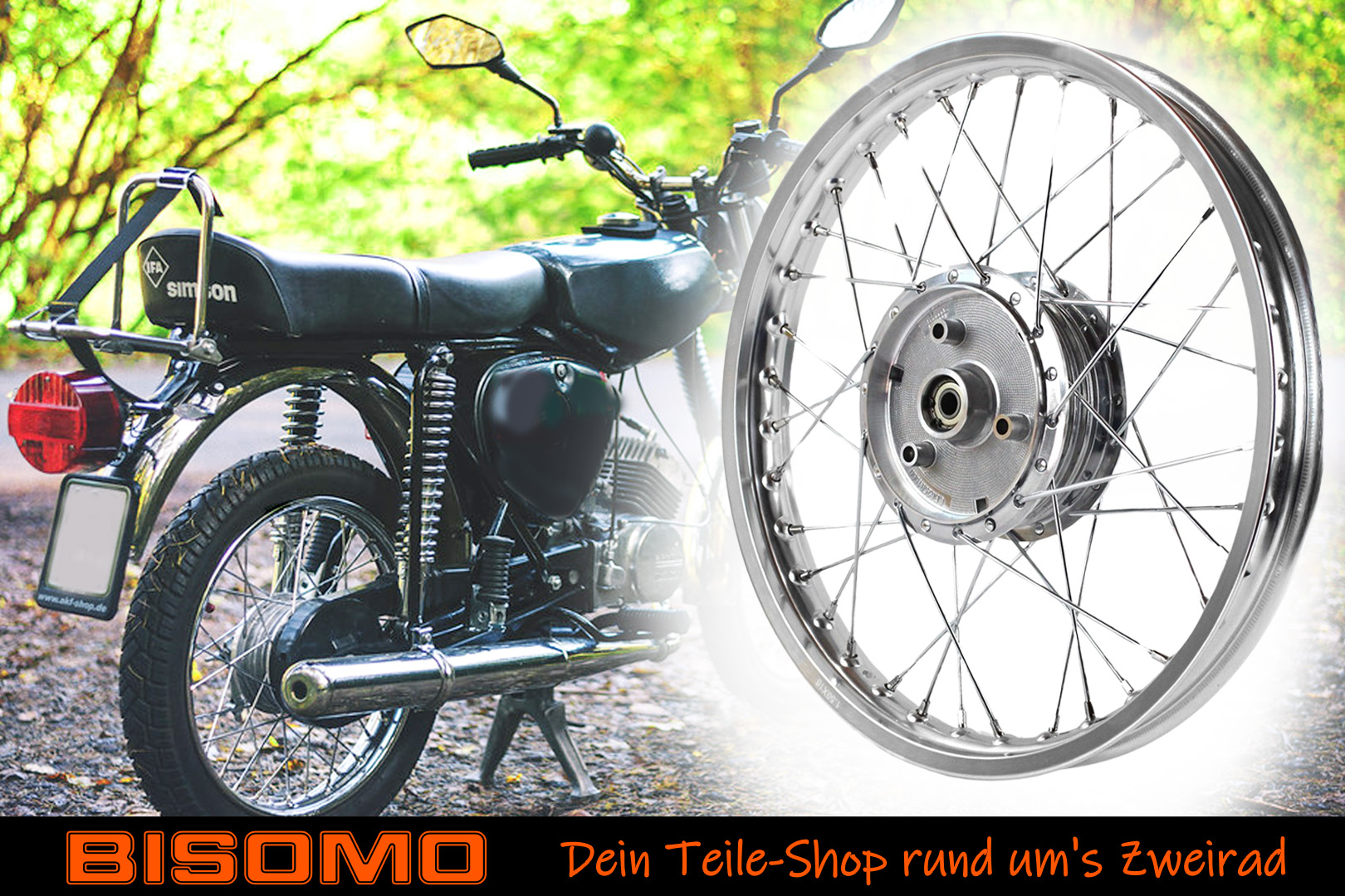 Speichenrad Alu Felge 1,50x16 Zoll eloxiert Nabe Alu Chrom Speichen alle Simson