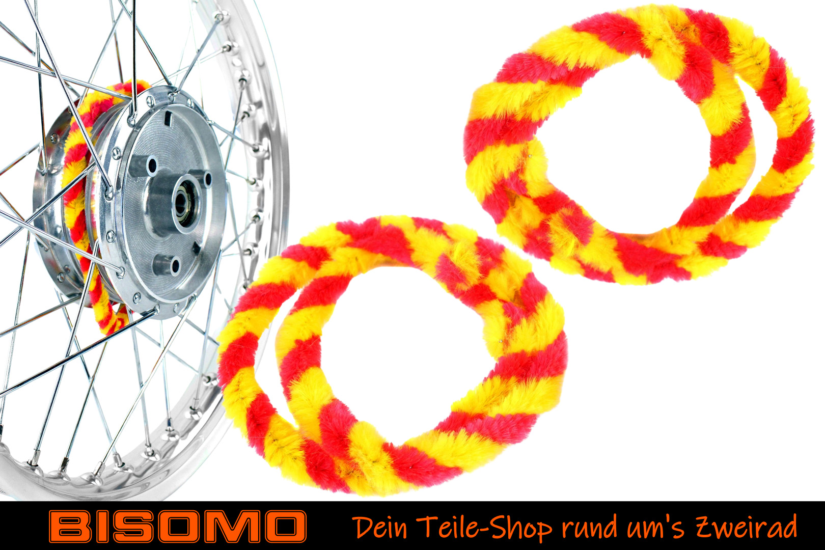 Nabenputzringe 2x 56cm Rot Gelb Moped Simson S50 KR51 E-Bike Fahrrad Putzringe