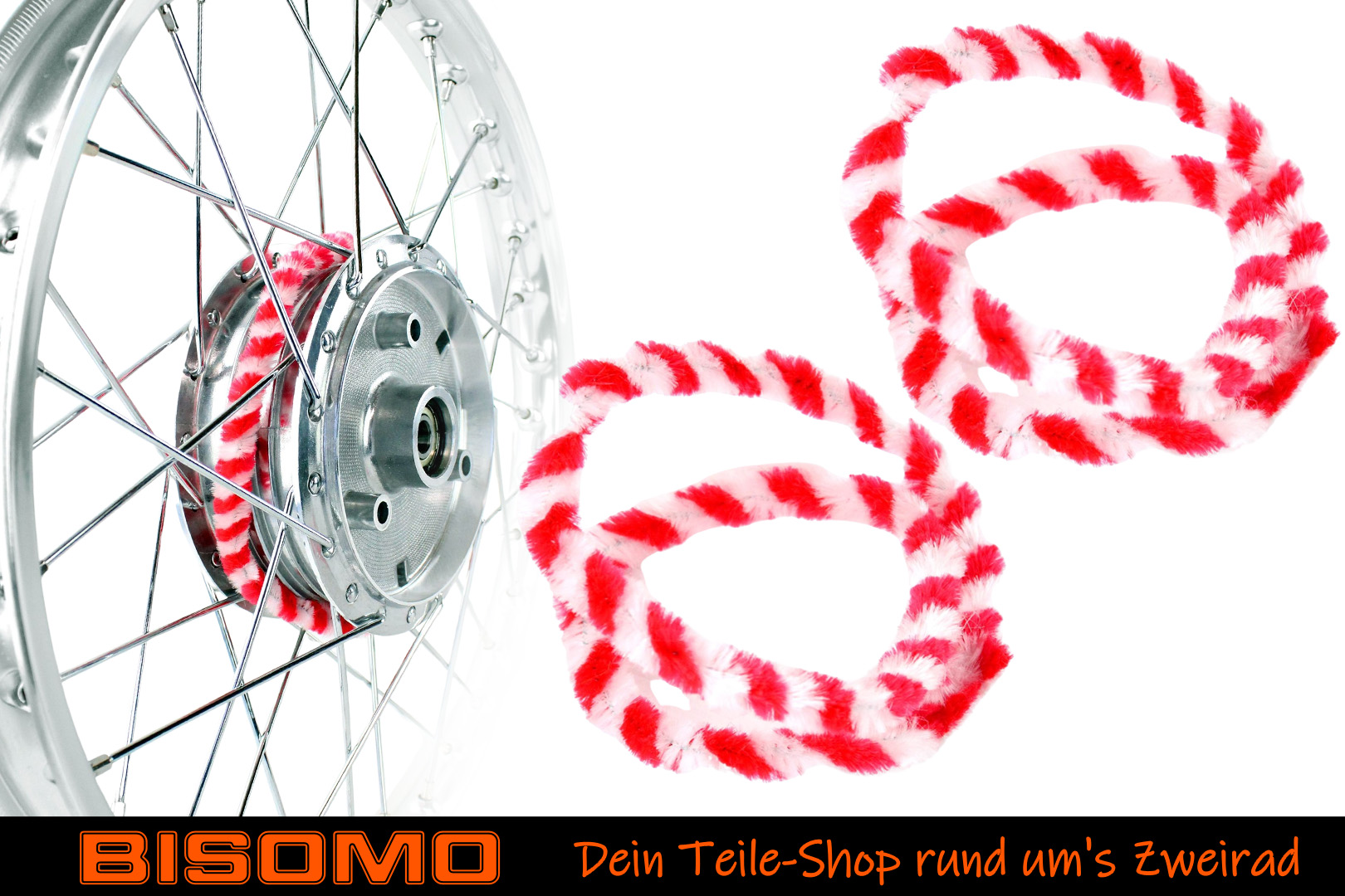 Nabenputzringe 2x 56cm Rot Weiß Moped Simson S50 KR51 E-Bike Fahrrad Putzringe